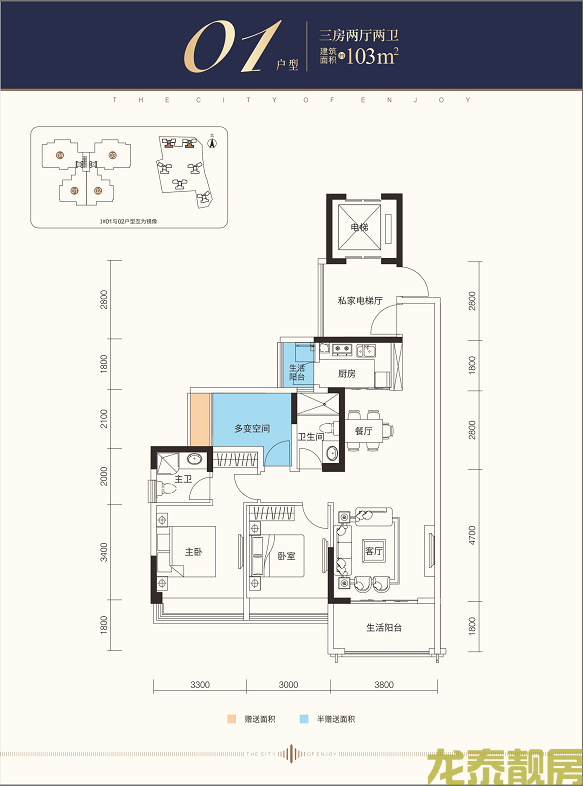 主力户型为103平-143平3居。